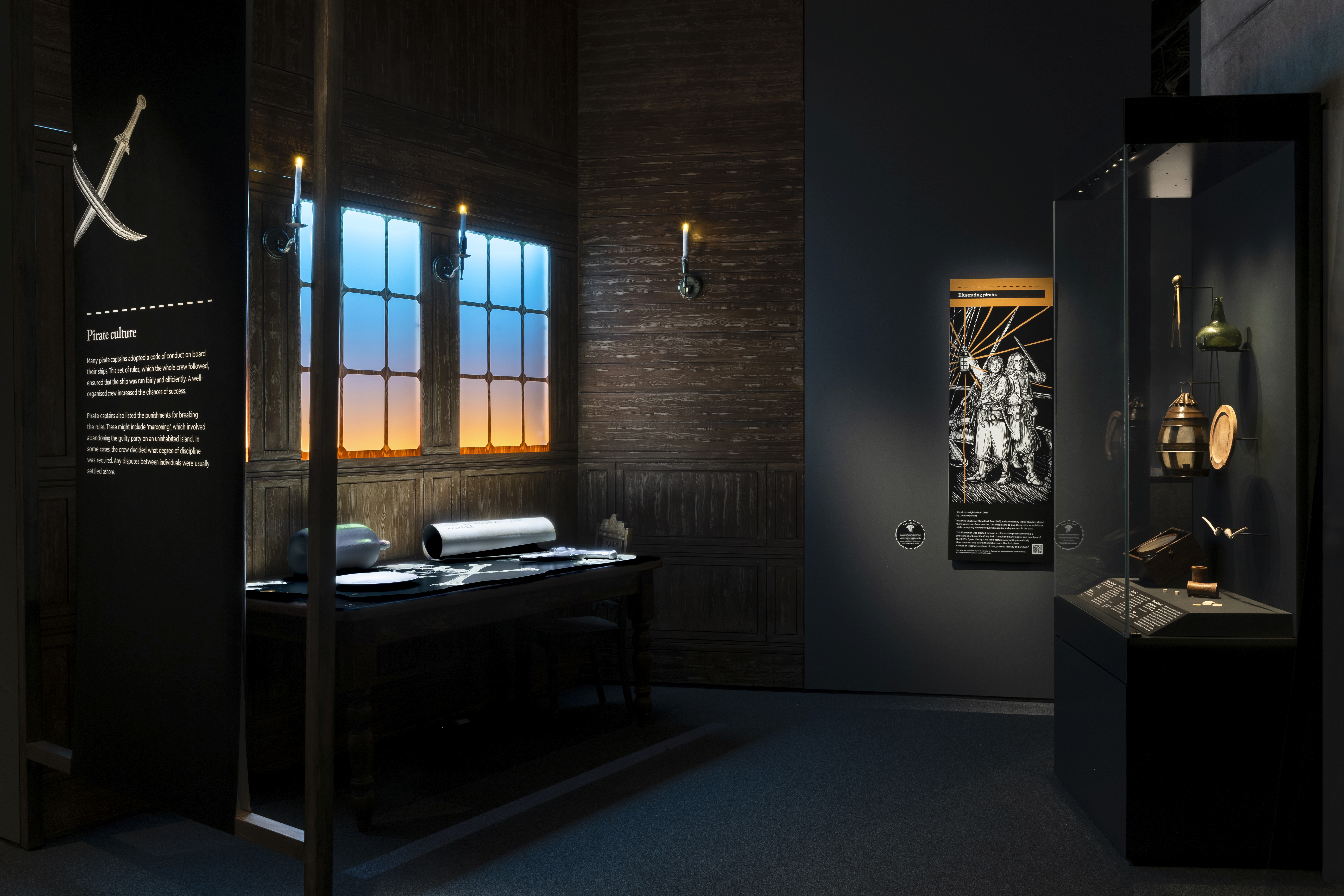 Canons, Cutlasses, Ghost Ships, treasure chests, Gibbets, cartoons, life on-board a pirate ship, and so much more, this exhibition tells the story of both fictitious and real life pirates, from Captain Hook & Jack Sparrow, to Edward 'Blackbeard' Teach & Anne Bonny. The exhibition explores Piracy on a global scale including South Asia and the Coast of North Africa, and features a section on modern day Pirates.